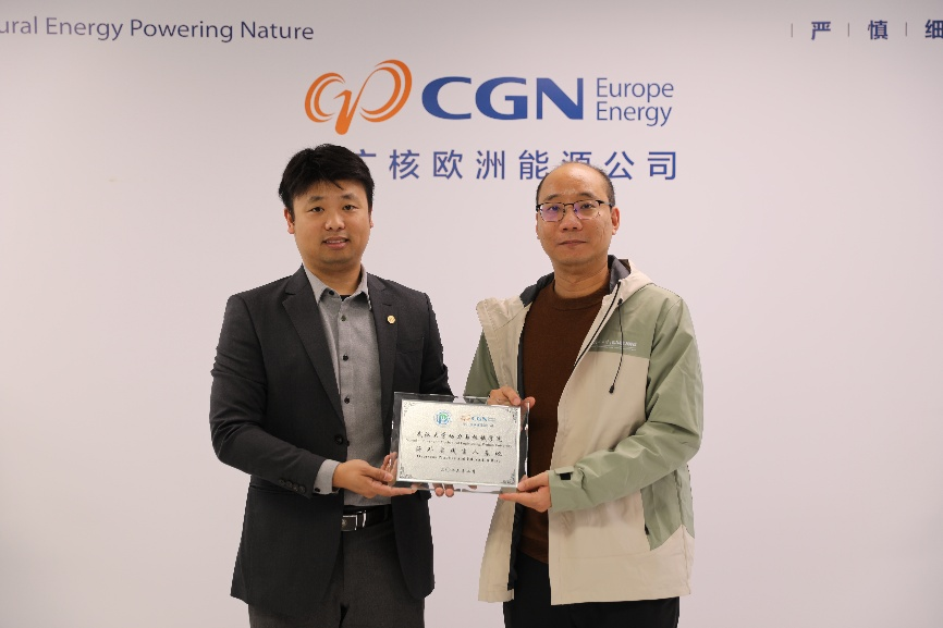 在中廣核歐洲能源公司,實(shí)踐隊(duì)深入了解中廣核從核電拓展至新能源的戰(zhàn)略考量與技術(shù)攻關(guān),關(guān)注歐洲市場(chǎng)設(shè)備準(zhǔn)入限制、負(fù)電價(jià)應(yīng)對(duì)等實(shí)際挑戰(zhàn),圍繞海外崗位能力要求、專業(yè)學(xué)習(xí)方向、職業(yè)規(guī)劃等尋求建議。期間,副院長侯佑民代表學(xué)院向企業(yè)授予“武漢大學(xué)動(dòng)力與機(jī)械學(xué)院海外實(shí)踐育人基地”牌匾,標(biāo)志著學(xué)院首個(gè)海外實(shí)踐育人平臺(tái)正式落地,學(xué)院國際化人才培養(yǎng)工作邁出實(shí)質(zhì)性步伐,為后續(xù)常態(tài)化開展海外實(shí)踐教學(xué)、深化校企國際合作奠定了堅(jiān)實(shí)的基礎(chǔ)。